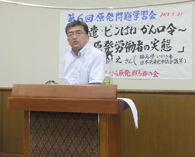 9月21日に箕郷文化会館で「原発労働者の実態」と題して、いわき市議会議員の渡辺博之氏の講演があり、参加しました。原発労働者の過酷な実態を生々しく報告され、驚かされました。